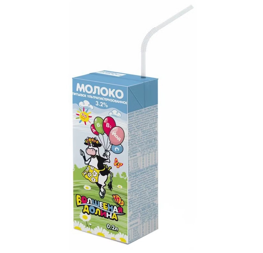 Молоко ультрапастеризованное "Волшебная Долина" с массовой долей жира 3,2%, предназначенное специально для детей дошкольного и школьного возраста, обогащённое витаминами А, В1, В2, С и йодом - знак натуральности, высокого качества и тщательного контроля на всех этапах производства. Наличие собственное приёмной лаборатории, микробиологического отделения и современной химической лаборатории позволяют каждую партию молочной продукции проверять на соответствие её физико-химических показателей необходимым санитарным и экологическим нормам.
