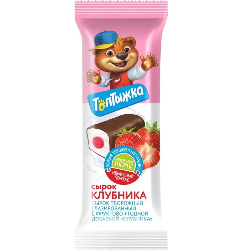 Творожный сырок в шоколадной глазури с джемом из ароматной клубники украсит любое чаепитие. Сырок станет отличным дополнением к завтраку или вкусным десертом, сохраняя в себе пользу натурального творога.