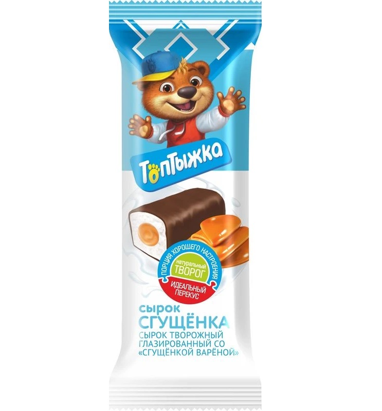 Сырок глазированный "Топтыжка" с вареной сгущенкой — лакомство, которое понравится и детям, и взрослым. Нежный творог дополняют начинка из натуральной вареной сгущенки и шоколадная глазурь. Сырок станет отличным дополнением к завтраку или вкусным десертом, сохраняя в себе пользу натурального творога.